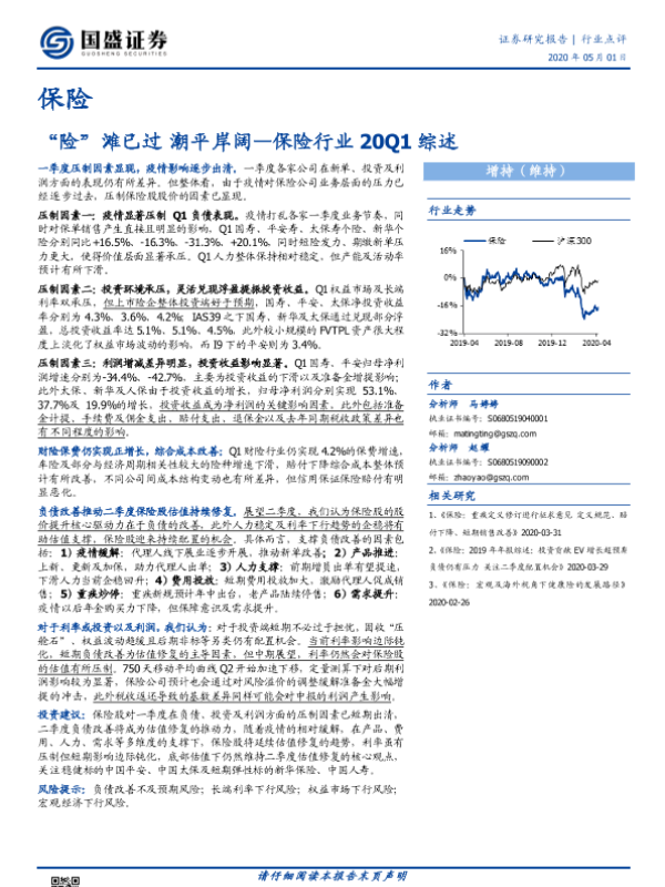 【国盛证券】【20200501】保险行业20Q1综述:“险”滩已过 潮平岸阔-15页