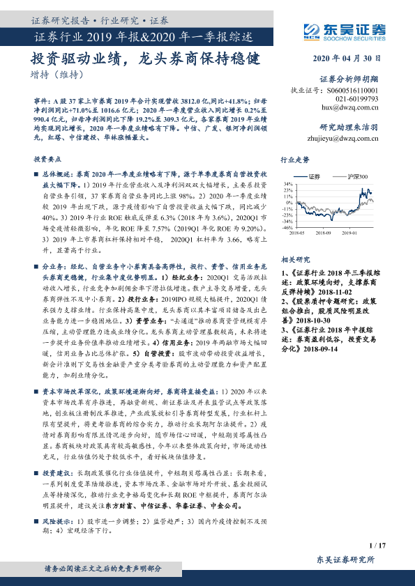 【东吴证券】【20200430】证券行业2019年报&2020年一季报综述-17页