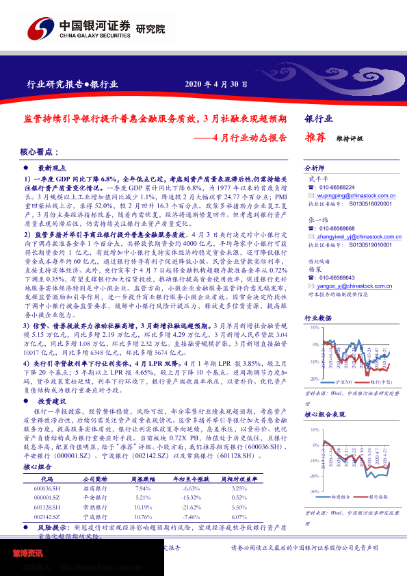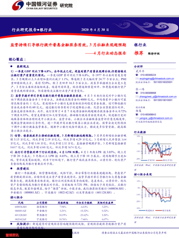 【银河证券】【20200430】4月行业动态报告-监管持续引导银行提升普惠金融服务质效,3月社融表现超预期-24页