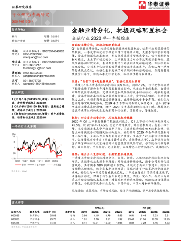 【华泰证券】【20200505】金融行业2020年一季报综述:金融业绩分化,把握战略配置机会-18页