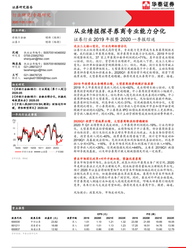 【华泰证券】【20200508】证券行业2019年报暨2020一季报综述:从业绩报探寻券商专业能力分化-20页