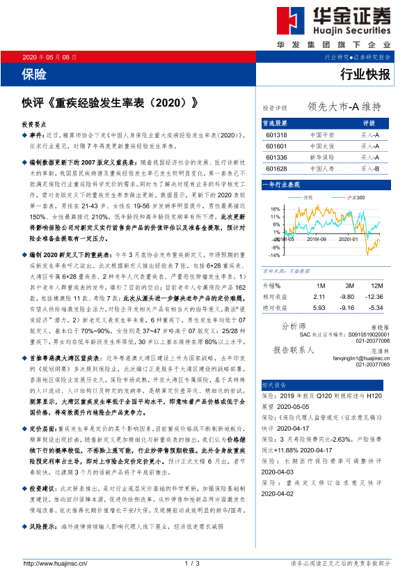 【华金证券】【20200508】快评《重疾经验发生率表(2020)》-3页
