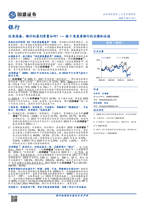 【国盛证券】【20200510】银行行业专题研究:还原报备,银行的盈利质量如何?---换个角度看银行的业绩和估值-19页