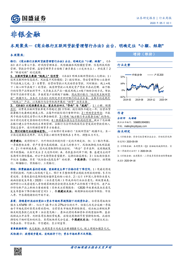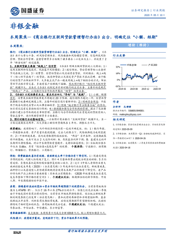 【国盛证券】【20200510】本周聚焦—《商业银行互联网贷款管理暂行办法》出台,明确定位“小额、短期”-9页