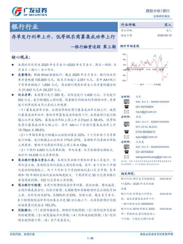 【广发证券】【20200510】银行融资追踪第三期:存单发行利率上升,低等级农商募集成功率上行-30页