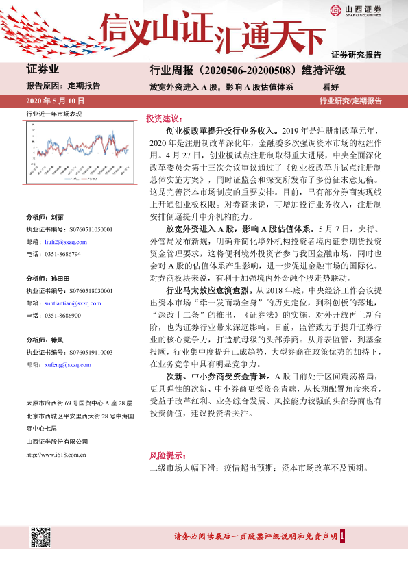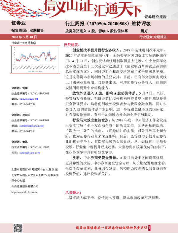 【山西证券】【20200510】证券行业周报:放宽外资进入A股,影响A股估值体系-8页