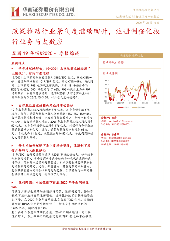 【华西证券】【20200510】券商19年报&2020一季报综述:政策推动行业景气度继续回升,注册制强化投行业务马太效应-44页