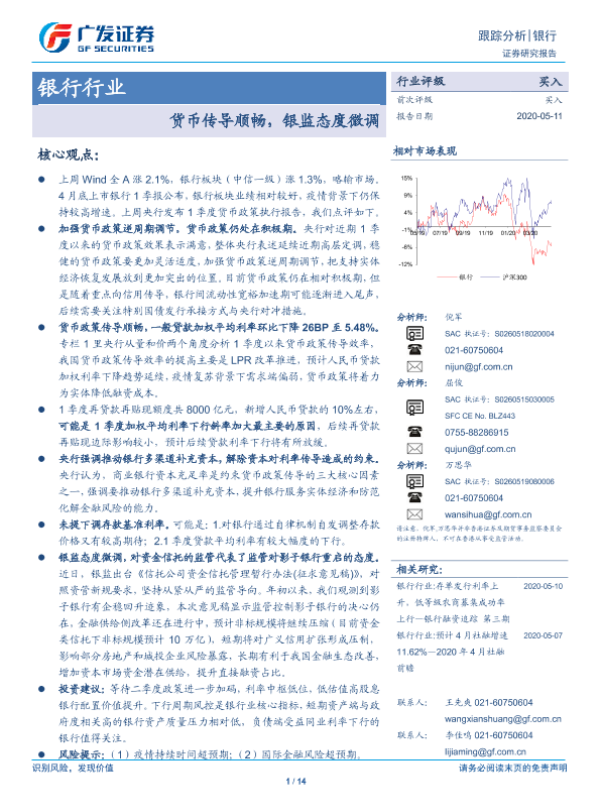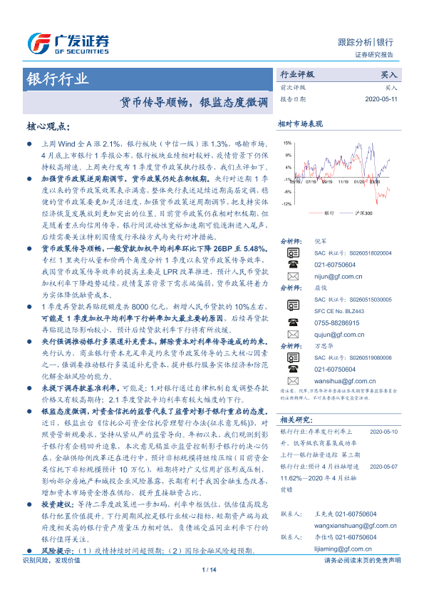 【广发证券】【20200511】银行行业跟踪分析:货币传导顺畅,银监态度微调-14页
