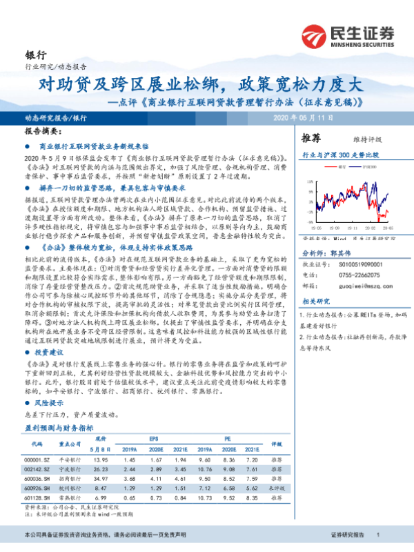 【民生证券】【20200511】商业银行互联网贷款管理暂行办法(征求意见稿)对助贷及跨区展业松绑,政策宽松力度大-9页