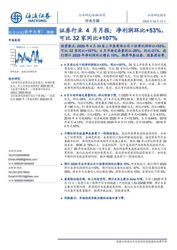 【海通证券】【20200512】证券行业4月月报:净利润环比+53%,可比32家同比+107%-7页
