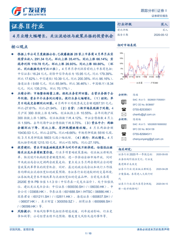 【广发证券】【20200512】证券Ⅱ行业:4月业绩大幅增长,关注流动性与政策共振的投资机会-10页