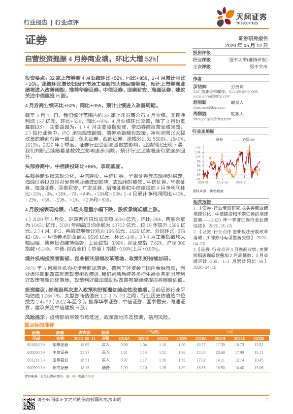 【天风证券】【20200512】自营投资提振4月券商业绩,环比大增52%-5页