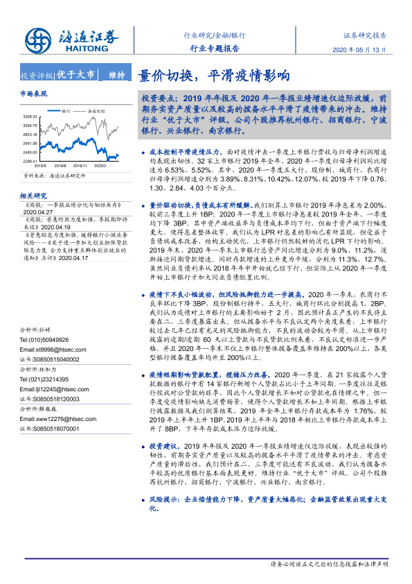 【海通证券】【20200513】银行行业专题报告:量价切换,平滑疫情影响-20页