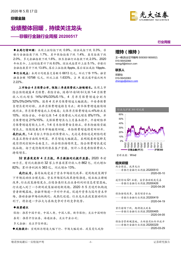 【光大证券】【20200517】非银行金融行业周报:业绩整体回暖,持续关注龙头-13页