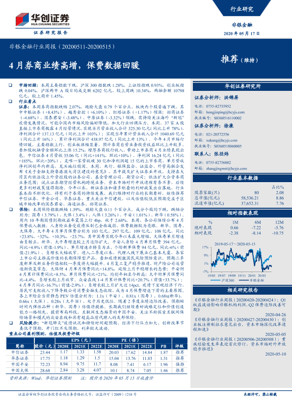 【华创证券】【20200517】4月券商业绩高增,保费数据回暖-15页