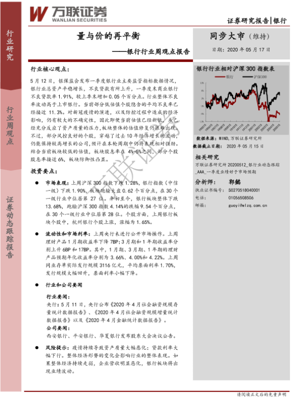 【万联证券】【20200517】银行行业周观点报告:量与价的再平衡-9页
