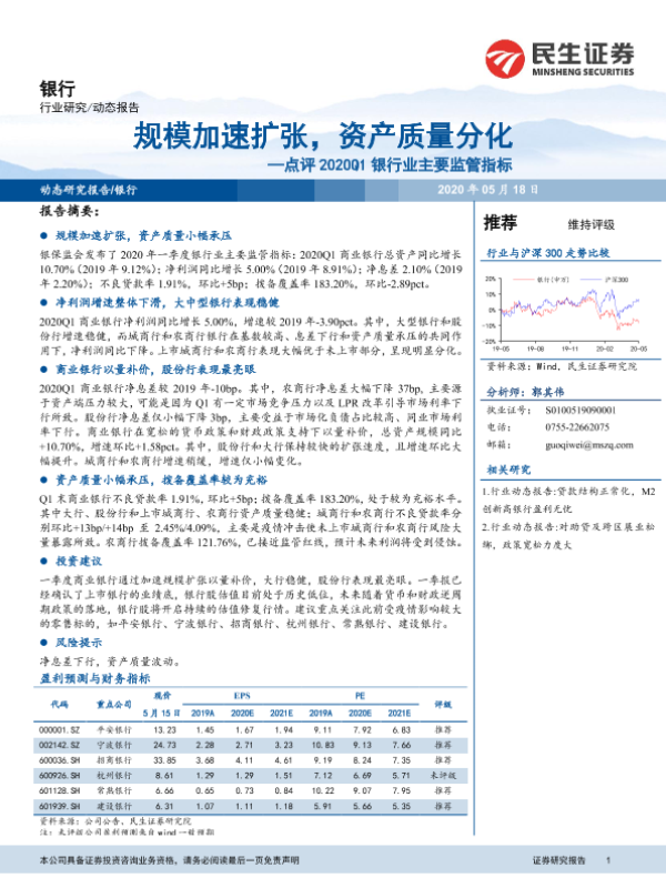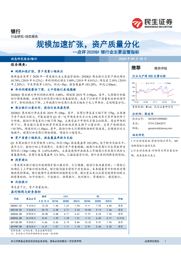 【民生证券】【20200518】点评2020Q1银行业主要监管指标:规模加速扩张,资产质量分化-12页
