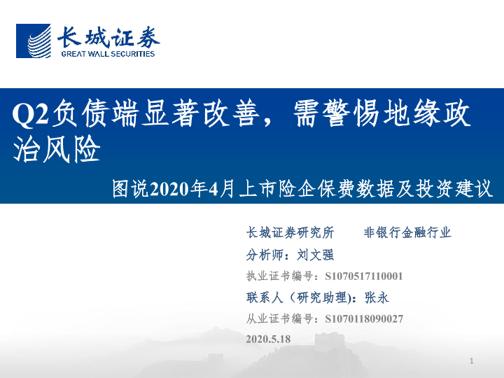 【长城证券】【20200518】图说2020年4月上市险企保费数据及投资建议-31页