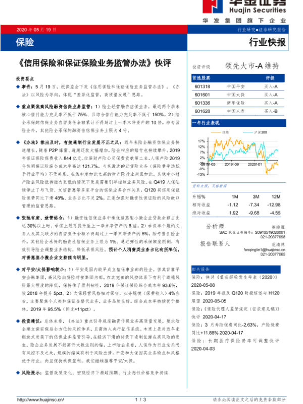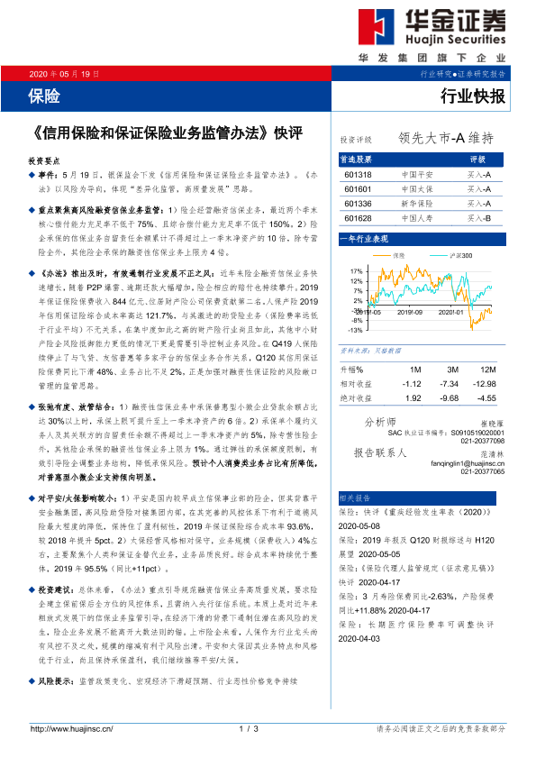 【华金证券】【20200519】信用保险和保证保险业务监管办法快评-3页