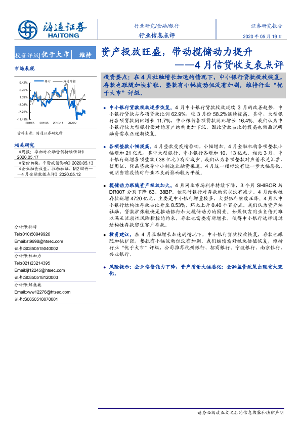 【海通证券】【20200519】4月信贷收支表点评:资产投放旺盛,带动揽储动力提升-3页