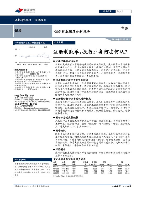 【国信证券】【20200522】证券行业深度分析报告:注册制改革,投行业务何去何从?-22页