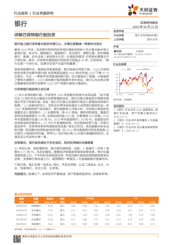 天风证券 巴菲特 投资策略 金融分析 银行股投资