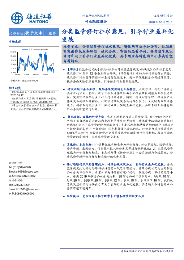【海通证券】【20200523】券商行业跟踪报告:分类监管修订征求意见,引导行业差异化发展-3页