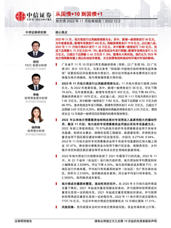 【中信证券】【20221202】地方债2022年11月观察报告:从国债+10到国债+1-16页