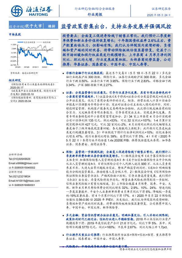 【海通证券】【20200524】综合金融服务行业周报:监管政策密集出台,支持业务发展并强调风控-9页