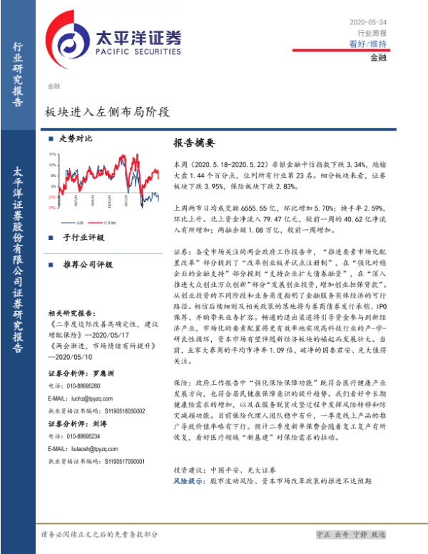 【太平洋证券】【20200524】金融行业周报:板块进入左侧布局阶段-11页