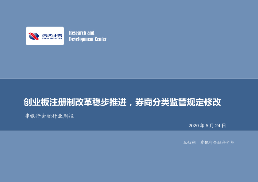 【信达证券】【20200524】非银行金融行业周报:创业板注册制改革稳步推进,券商分类监管规定修改-14页