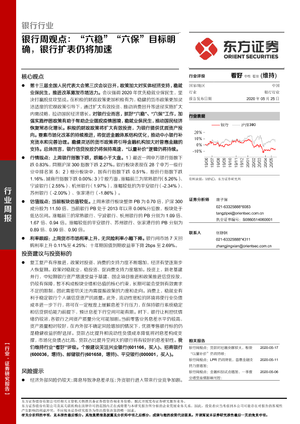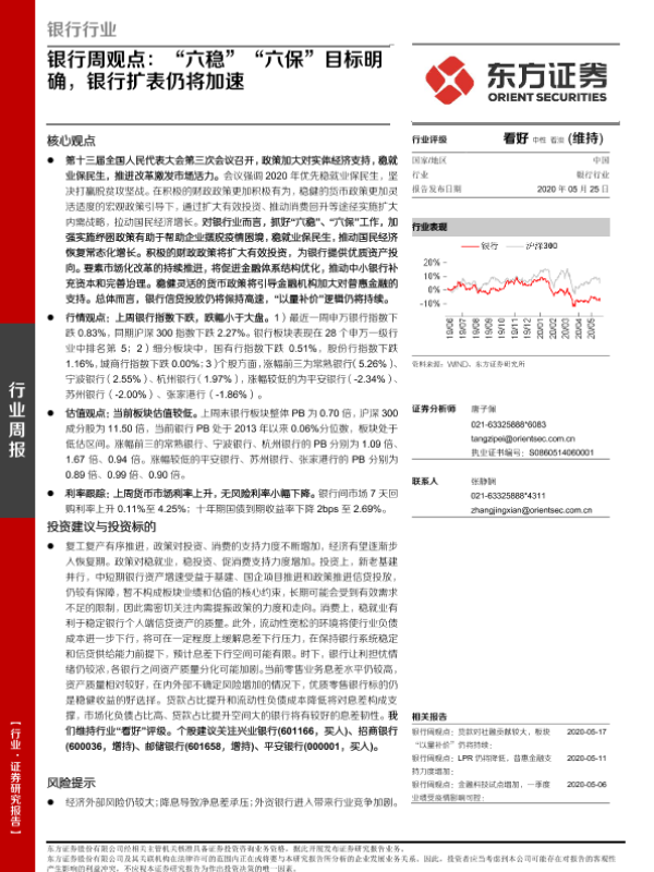 【东方证券】【20200525】银行周观点:“六稳”“六保”目标明确,银行扩表仍将加速-16页