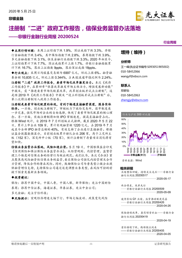 【光大证券】【20200525】非银行金融行业周报:注册制“二进”政府工作报告,信保业务监管办法落地-20页