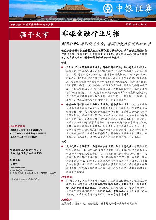 【中银证券】【20200524】非银金融行业周报:创业板IPO特别规定出台,券商分类监管规则迎大修-9页