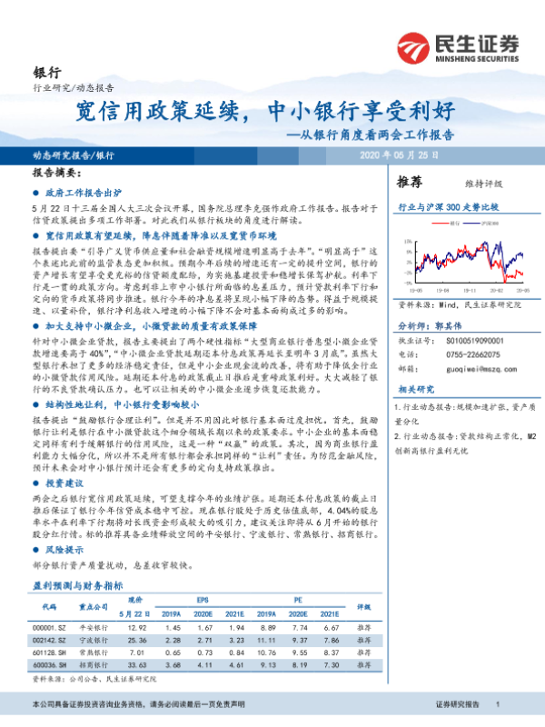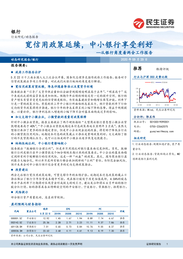 【民生证券】【20200525】从银行角度看两会工作报告:宽信用政策延续,中小银行享受利好-9页