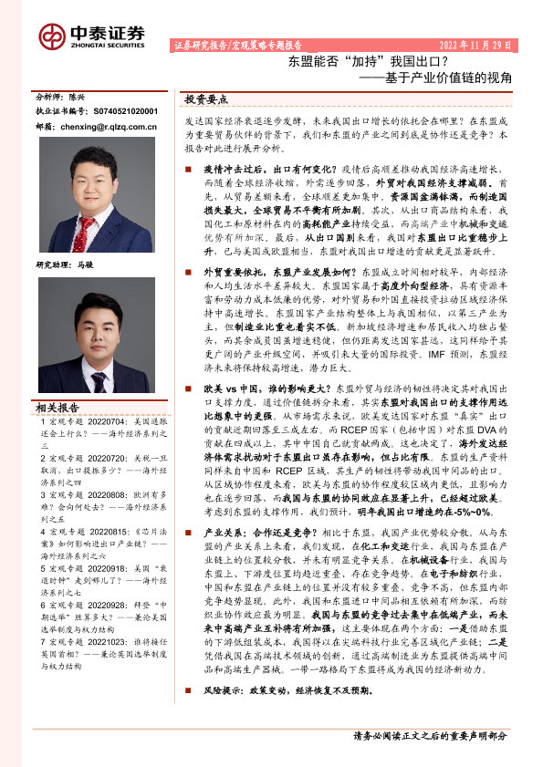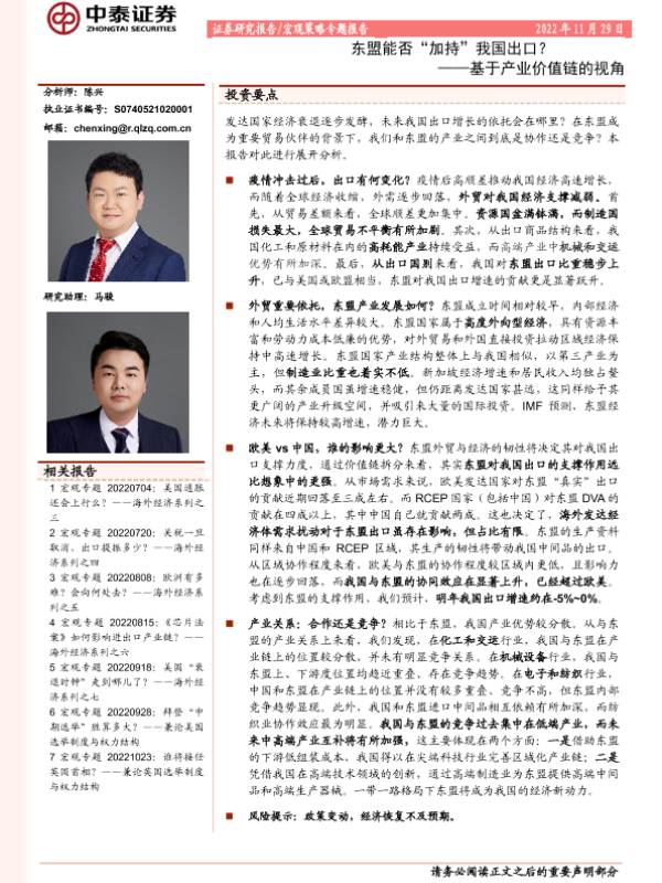 【中泰证券】【20221129】基于产业价值链的视角:东盟能否“加持”我国出口?-25页