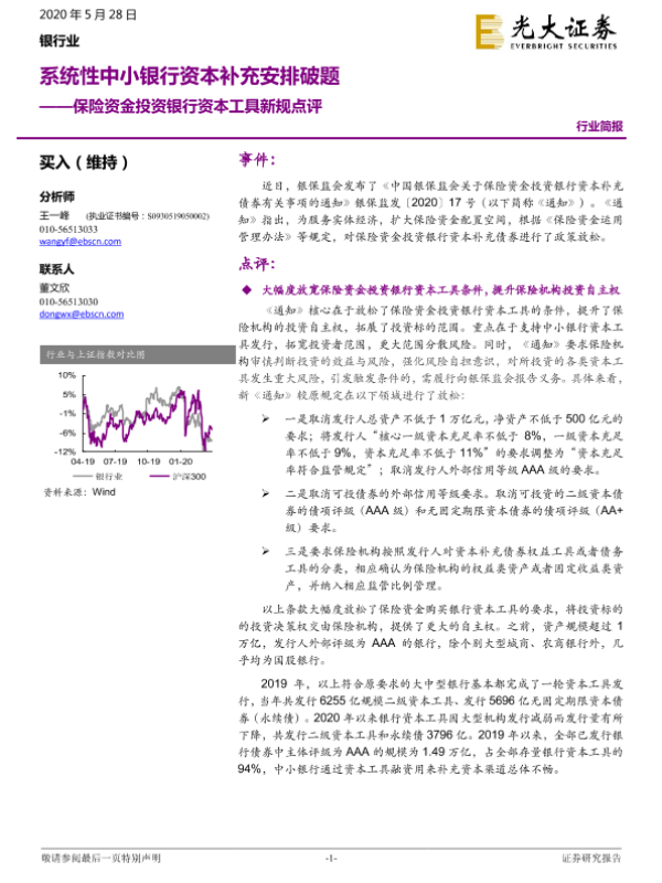 【光大证券】【20200528】保险资金投资银行资本工具新规点评:系统性中小银行资本补充安排破题-4页