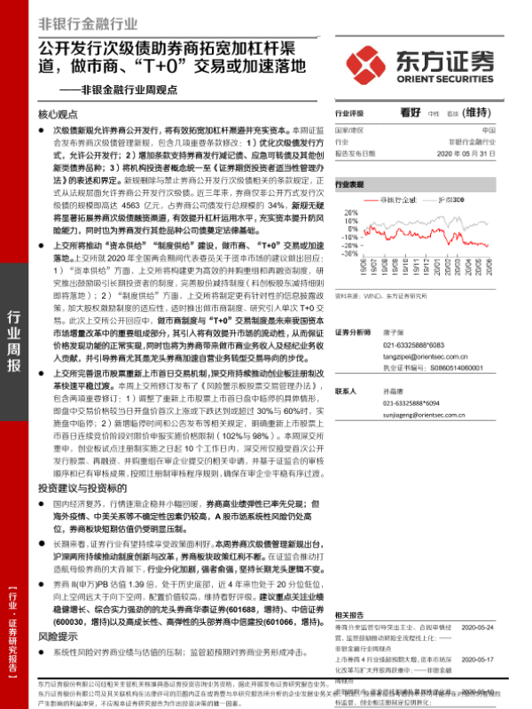 【东方证券】【20200531】非银金融行业周观点:公开发行次级债助券商拓宽加杠杆渠道,做市商、“T+0”交易或加速落地-12页