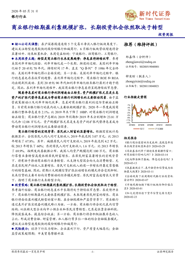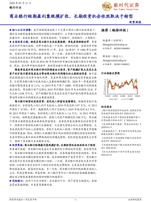 【新时代证券】【20200531】商业银行短期盈利靠规模扩张,长期投资机会依然取决于转型-15页