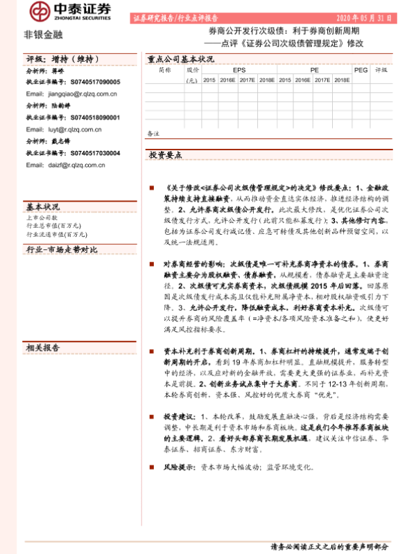 【中泰证券】【20200531】券商公开发行次级债:利于券商创新周期——点评《证券公司次级债管理规定》修改-8页
