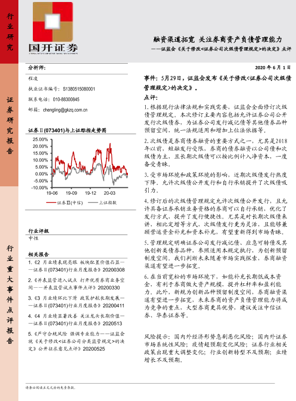 【国开证券】【20200601】证监会《关于修改证券公司次级债管理规定 的决定》点评:融资渠道拓宽 关注券商资产负债管理能力-6页