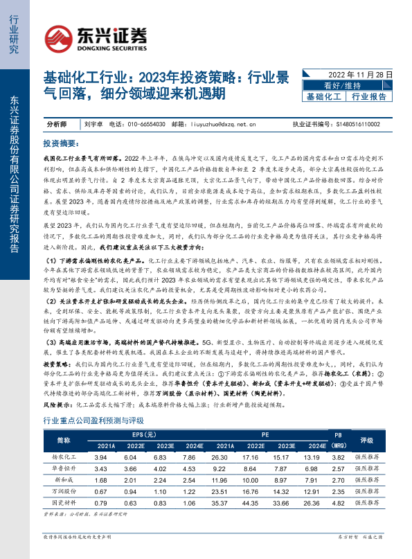 【东兴证券】【20221128】基础化工行业2023年投资策略:行业景气回落,细分领域迎来机遇期-19页