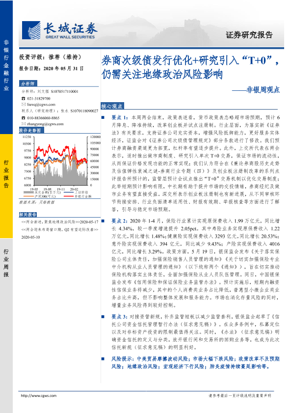 【长城证券】【20200531】非银周观点:券商次级债发行优化+研究引入“T+0”,仍需关注地缘政治风险影响-45页