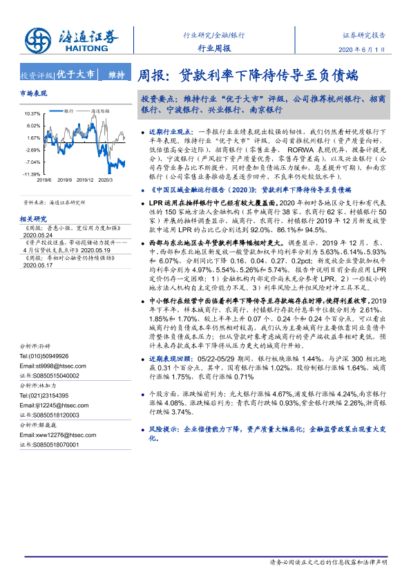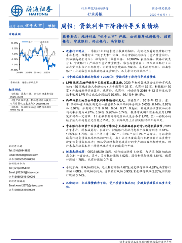 【海通证券】【20200601】银行行业周报:贷款利率下降待传导至负债端-7页