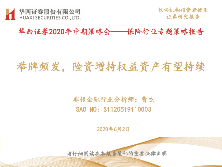 【华西证券】【20200602】华西证券2020年中期策略会——保险行业专题策略报告:举牌频发,险资增持权益资产有望持续-14页