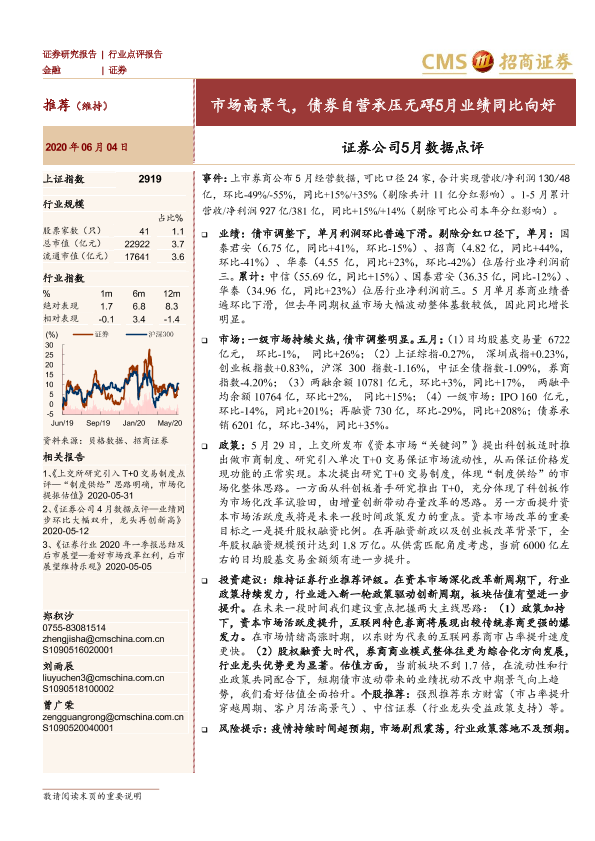 【海通证券】【20200604】证券公司5月数据点评:市场高景气,债券自营承压无碍5月业绩同比向好-3页