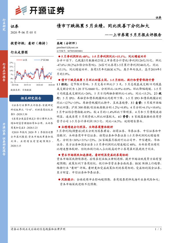 【开源证券】【20200605】上市券商5月月报点评报告:债市下跌拖累5月业绩,同比改善下分化加大-5页