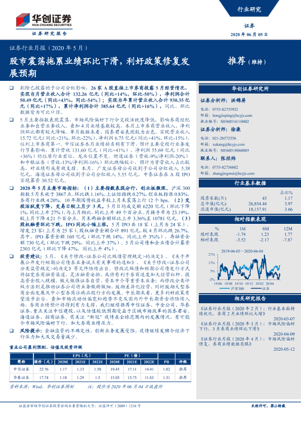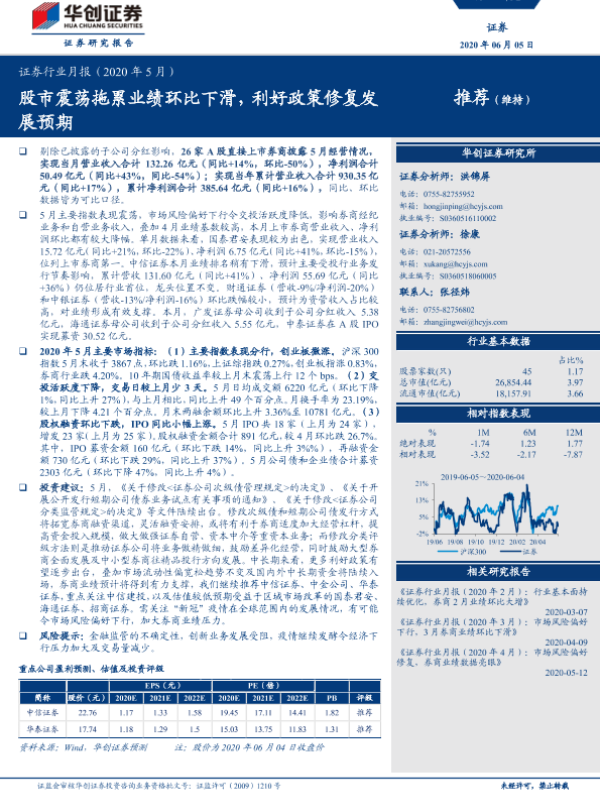 【华创证券】【20200605】证券行业月报:股市震荡拖累业绩环比下滑,利好政策修复发展预期-6页