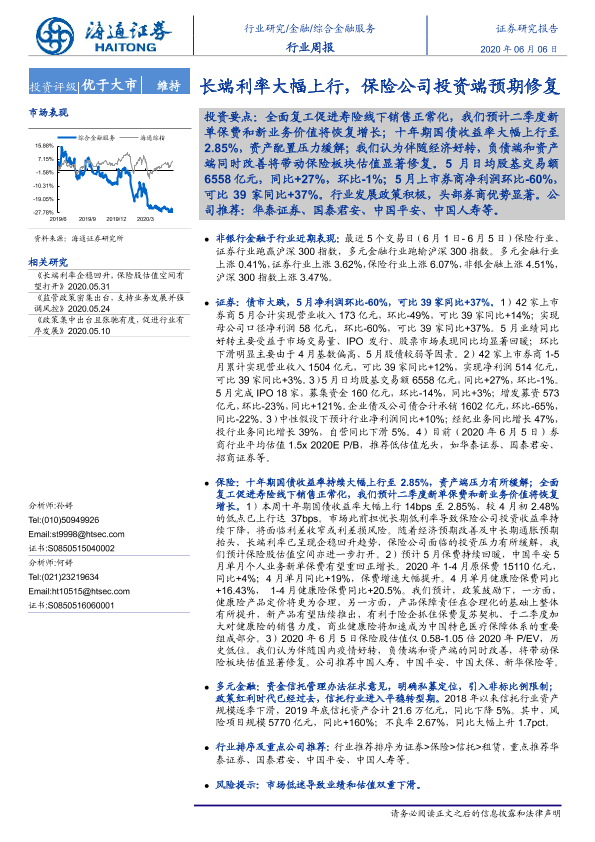【海通证券】【20200606】综合金融服务行业周报:长端利率大幅上行,保险公司投资端预期修复-10页