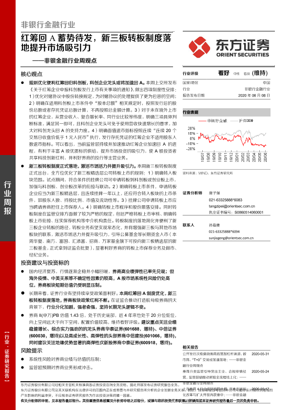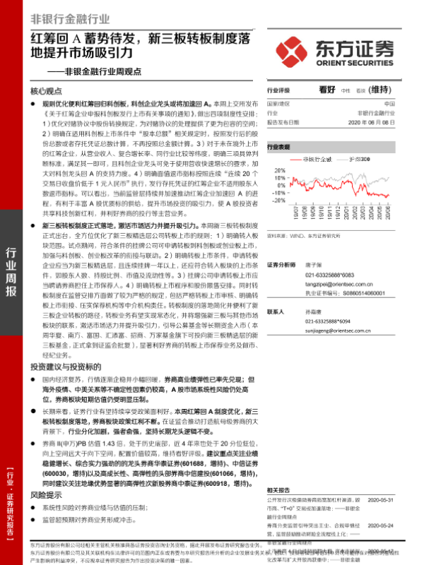 【东方证券】【20200608】非银金融行业周观点:红筹回A蓄势待发,新三板转板制度落地提升市场吸引力-13页